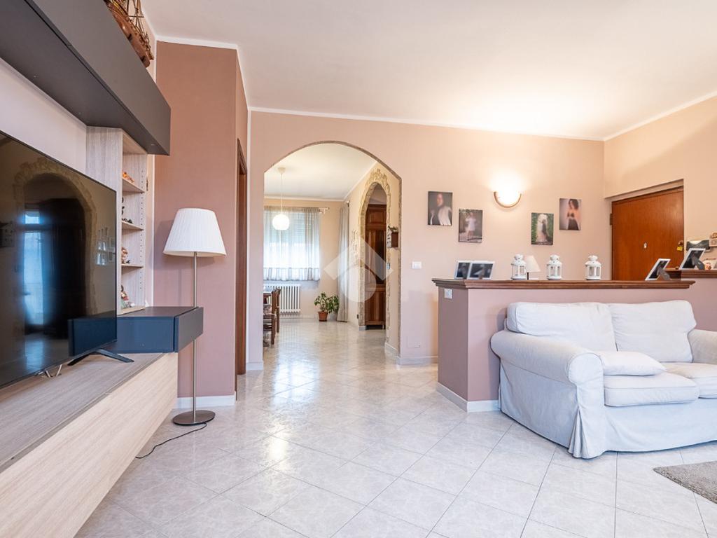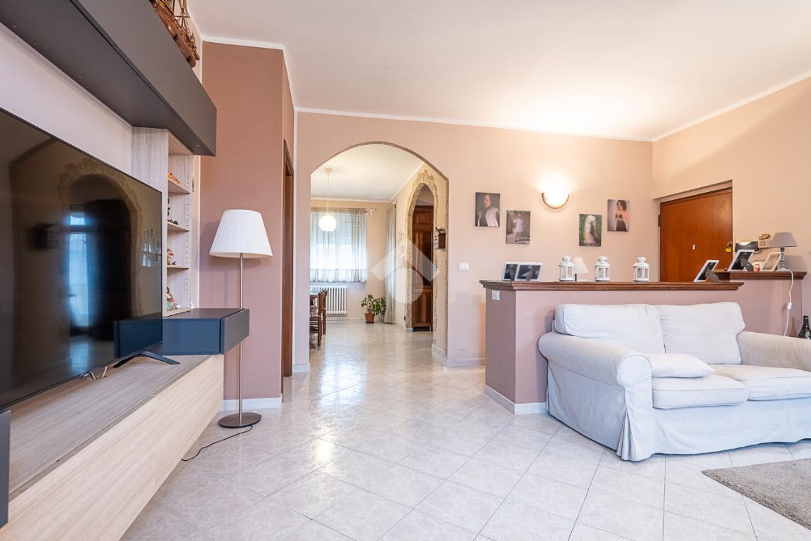 Nel Centro della Città proponiamo questo ampio appartamento situato al terzo ed ultimo piano di una palazzina costruita alla fine degli anni '60. L'ampia superficie dell'immobile rappresenta una soluzione ideale per chi cerca spazio e comodità. I cinque vani che lo compongono, infatti risultano ben distribuiti e le due camere da letto possono diventare tre o anche quattro all'occorrenza, anche se attualmente la zona giorno ne costituisce la parte predominante, con zona soggiorno, zona pranzo e zona cottura, quest'ultima con balcone. Il bagno, è stato recentemente ristrutturato, così come i serramenti esterni di tutto l'alloggio. Un vano ad esso adiacente è predisposto per poter essere utilizzato come secondo servizio, come lavanderia o più semplicemente come ripostiglio. L'impianto di riscaldamento è centralizzato con termovalvole e contabilizzatori individuali del calore. La proprietà include anche il posto auto coperto, situato nel cortile condominiale e l'ampia cantina al piano terreno.