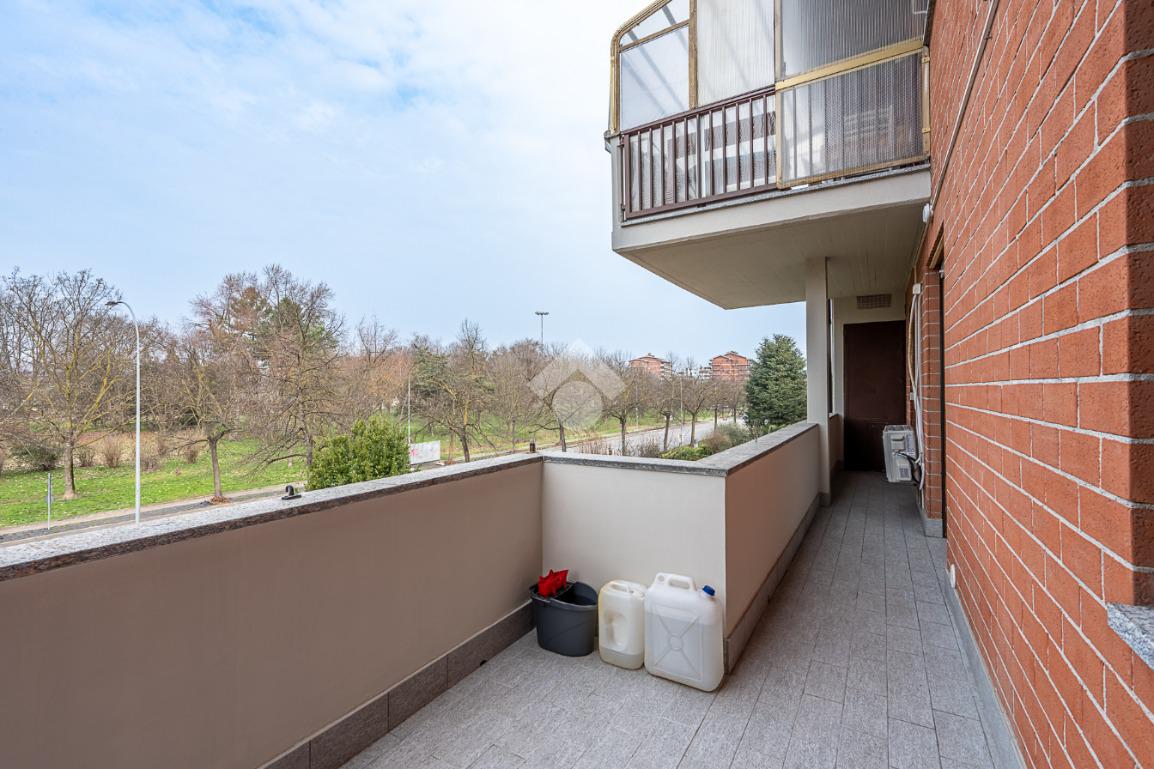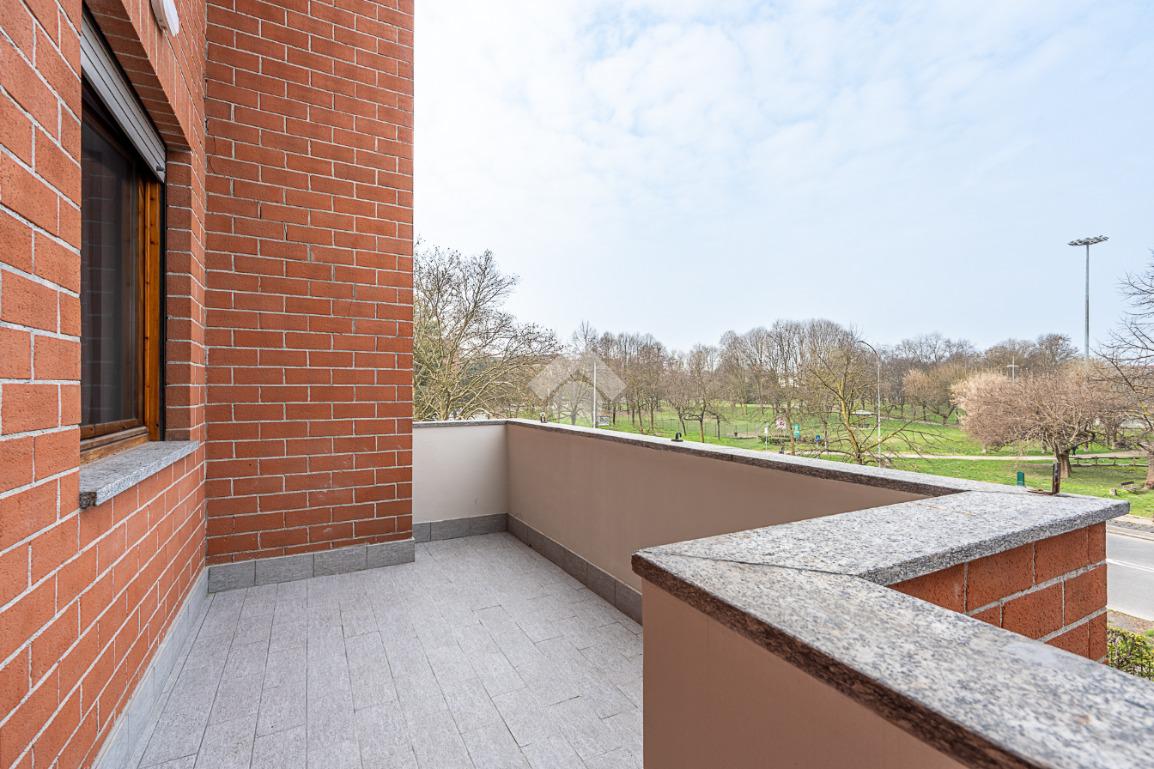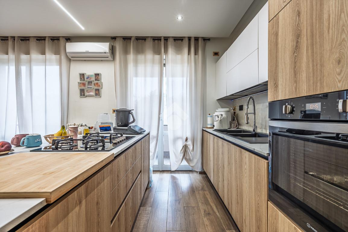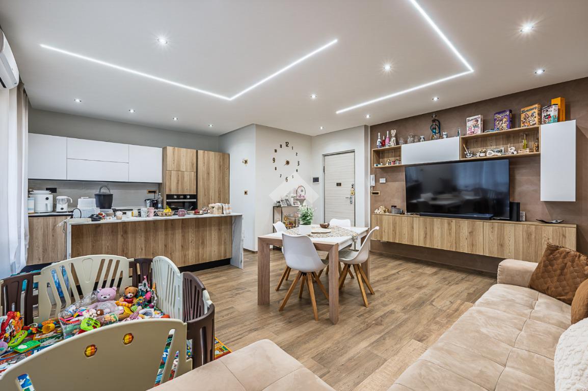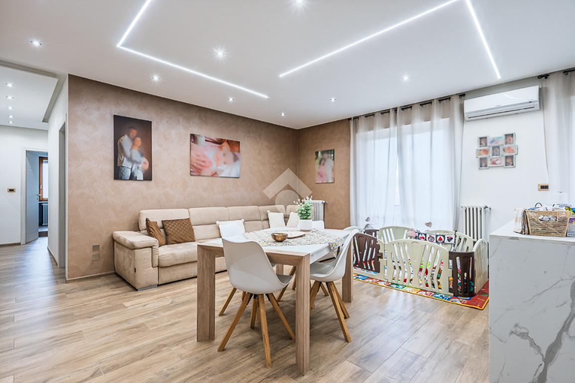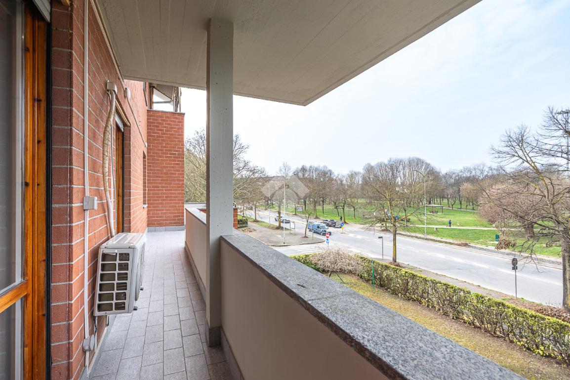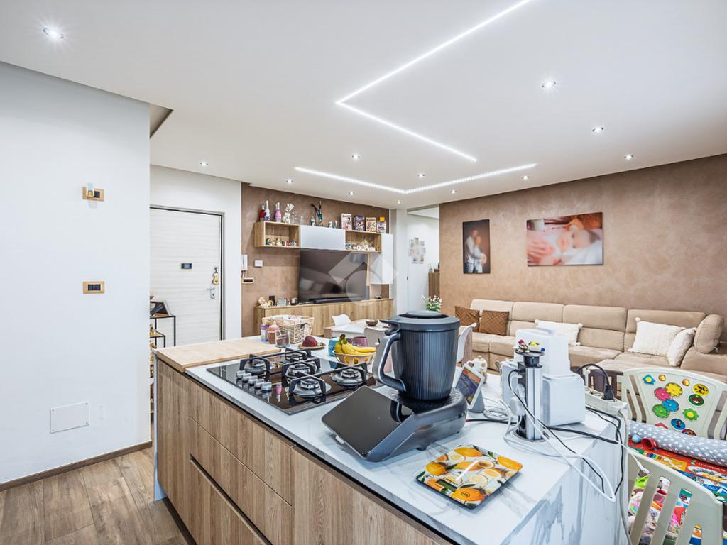 Nella zona della Città denominata del 'Centro Commerciale', in una palazzina di tre piani prospiciente il Parco 'Salvo d'Acquisto'. La costruzione risale alla metà degli anni '80 e si presenta in ottimo stato, essendo appena stati completati importanti lavori di manutenzione delle facciate. Anche l'appartamento oggetto della proposta è stato oggetto di una generale ristrutturazione, nel 2021, finalizzata a realizzare un ambiente più moderno e confortevole. La zona giorno è il fiore all'occhiello dell'immobile, costituita da unico grande ambiente nato dalla fusione tra la cucina ed il soggiorno, grazie alla quale è stato possibile posizionare un piano di lavoro all'americana, cosiddetto ad 'isola'. L'ambiente è dotato di climatizzatore e si affaccia sull'ampio balcone con meravigliosa vista verso il parco. Le due camere da letto garantiscono la possibilità di vivere l'alloggio in comodità anche per una famiglia con figli. Il bagno è spazioso e finestrato ed accessoriato con la vasca. L'impianto di riscaldamento è autonomo con moderna caldaia a condensazione. Completano la proposta la cantina e l'ampio box auto, di circa 24 mq., entrambi al piano interrato.